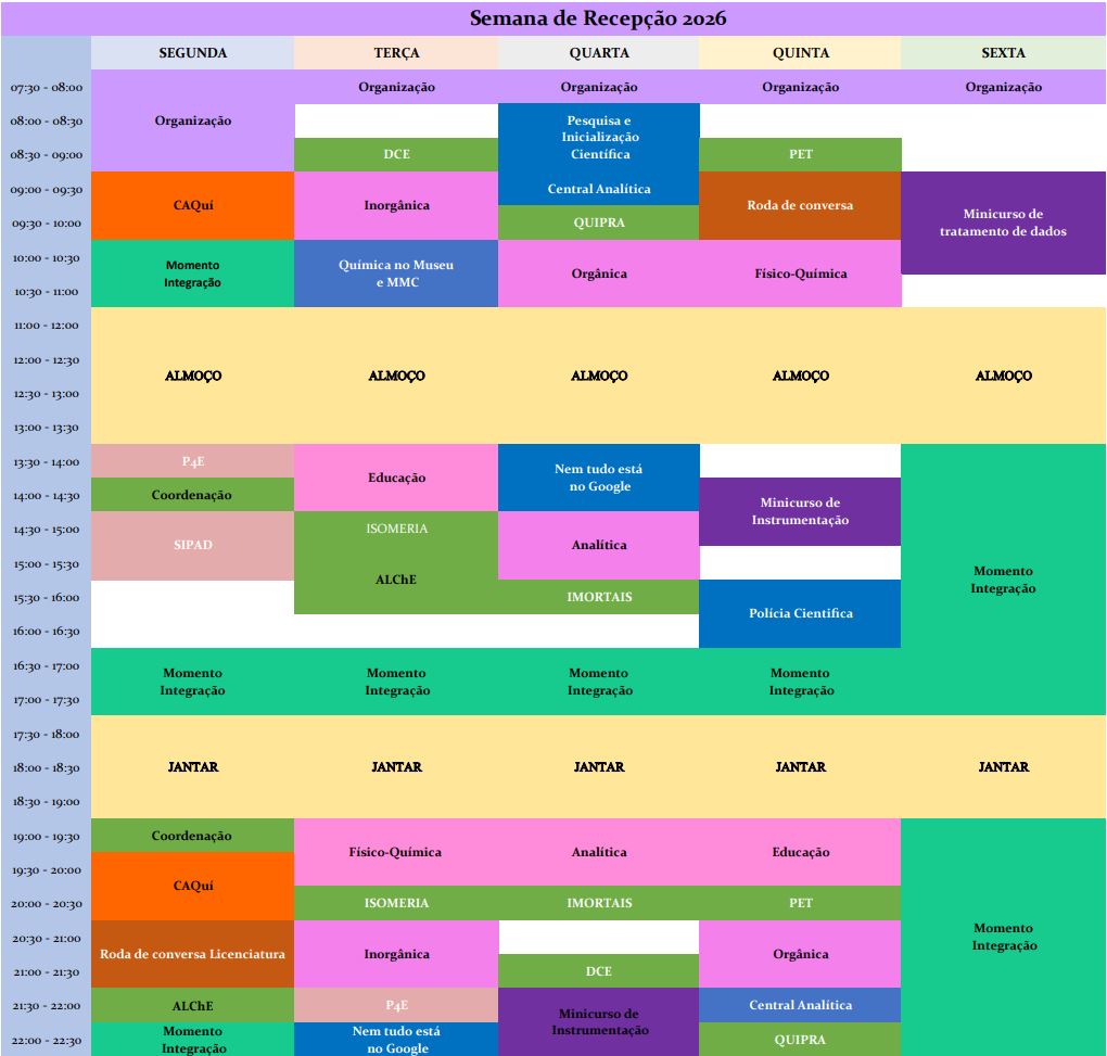 ► Semana de recepção dos calouros 2026 – Cronograma PDF
