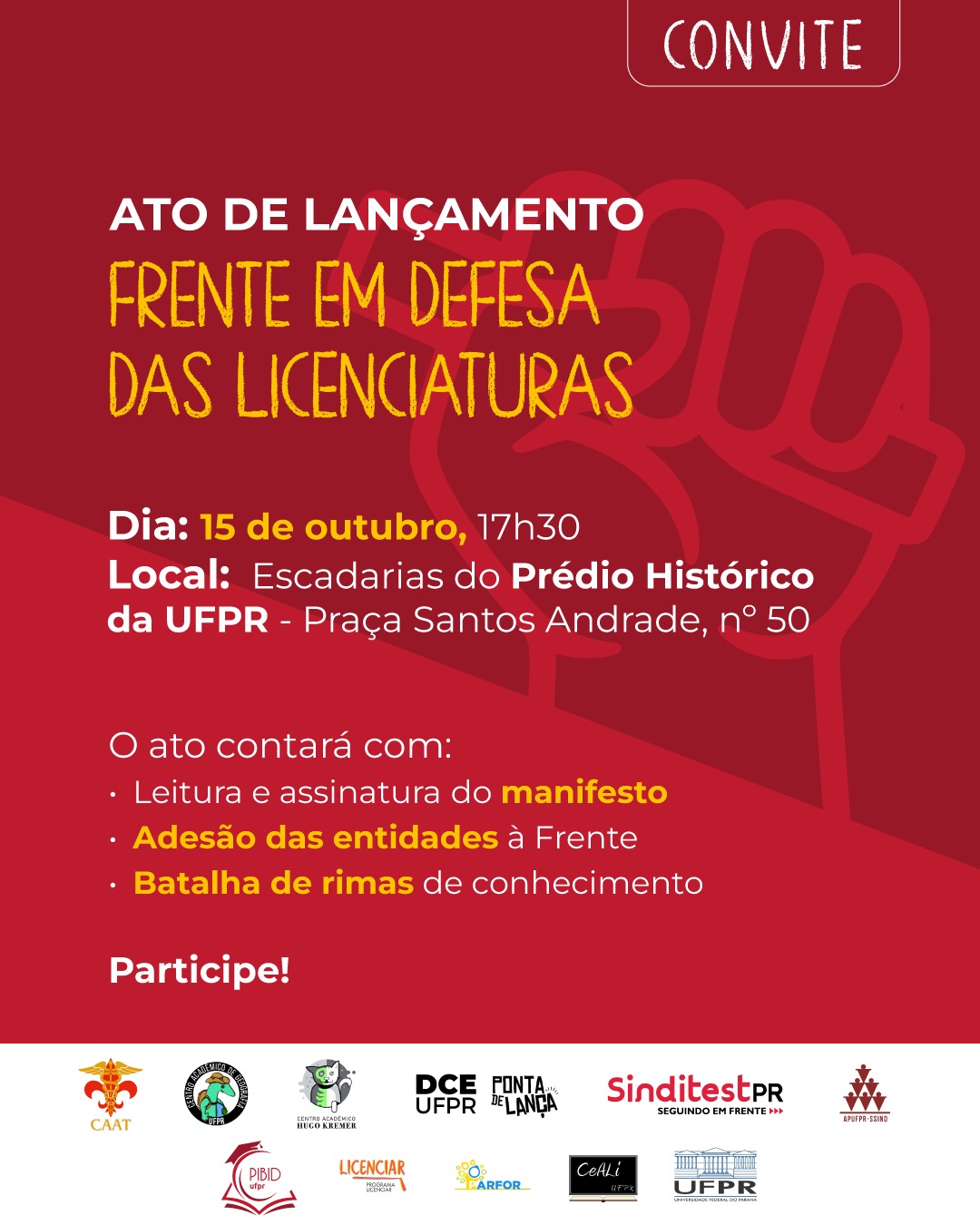 A Universidade Federal do Paraná (UFPR), em parceria com a Associação dos Professores da UFPR (APUFPR), o Sindicato dos Trabalhadores em Educação das Instituições Federais de Ensino Superior no Estado do Paraná (SINDITEST-PR), o Diretório Central dos Estudantes (DCE-UFPR) e os Centros Acadêmicos da Universidade, convida a comunidade universitária para: